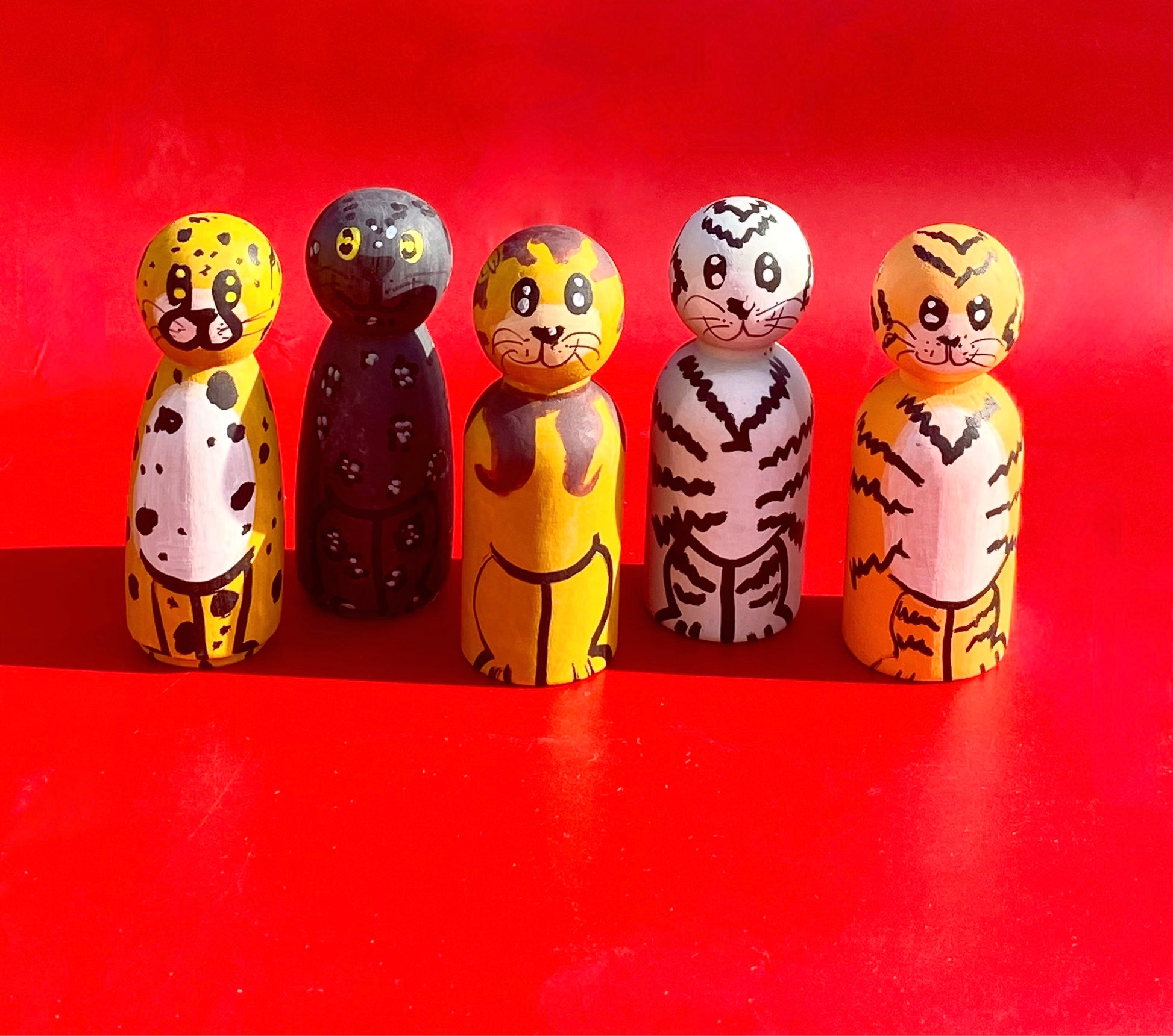 Meet your new wild crew! This delightful drawstring bag features five hand-painted big cat buddies—a majestic Lion, speedy Cheetah, striking white Tiger, bold Tiger, and Jaguar. Each character bursts with personality and charm, making this the perfect companion for adventures big and small. A roaring good time awaits!